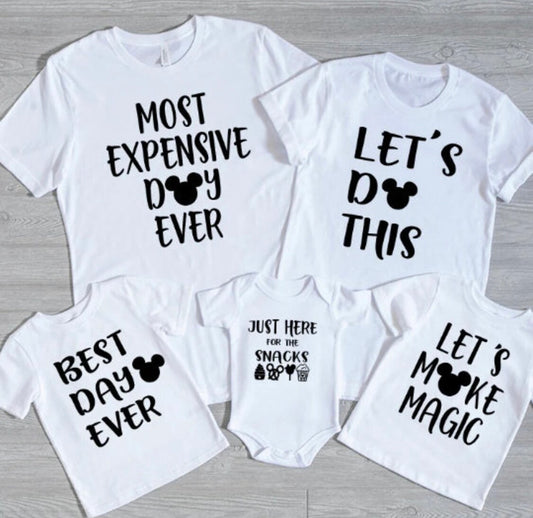 * DISNEY: Graphic "HAPPIEST DAY EVER" Unisex Adult Tee, Crewneck Sweatshirt and Hoodie