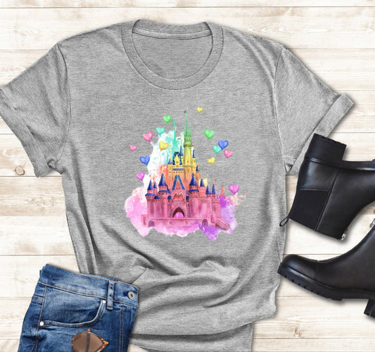 * Disney: GRAPHIC "Disney Water Color Castle" Unisex Adult Tee and Crewneck Sweatshirt