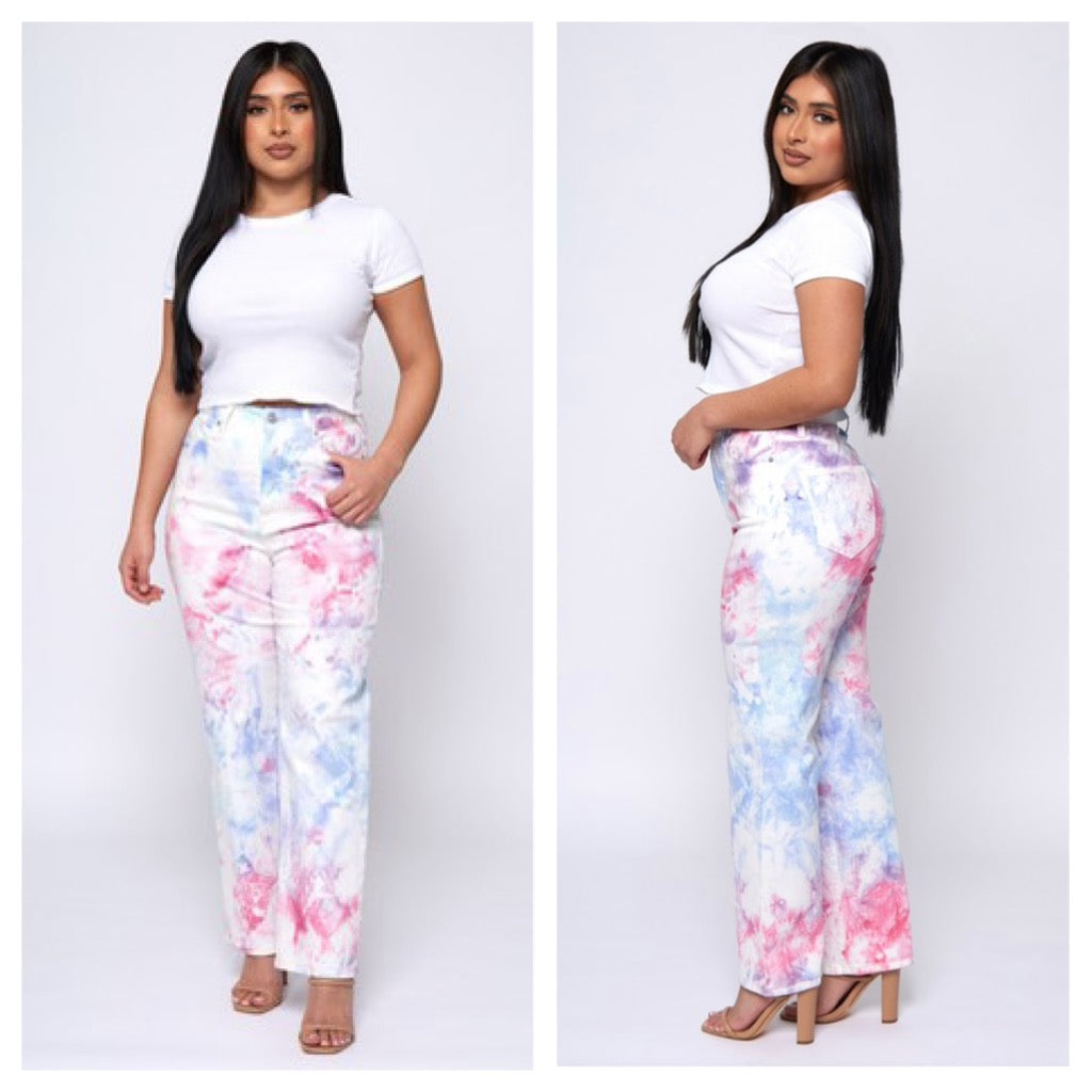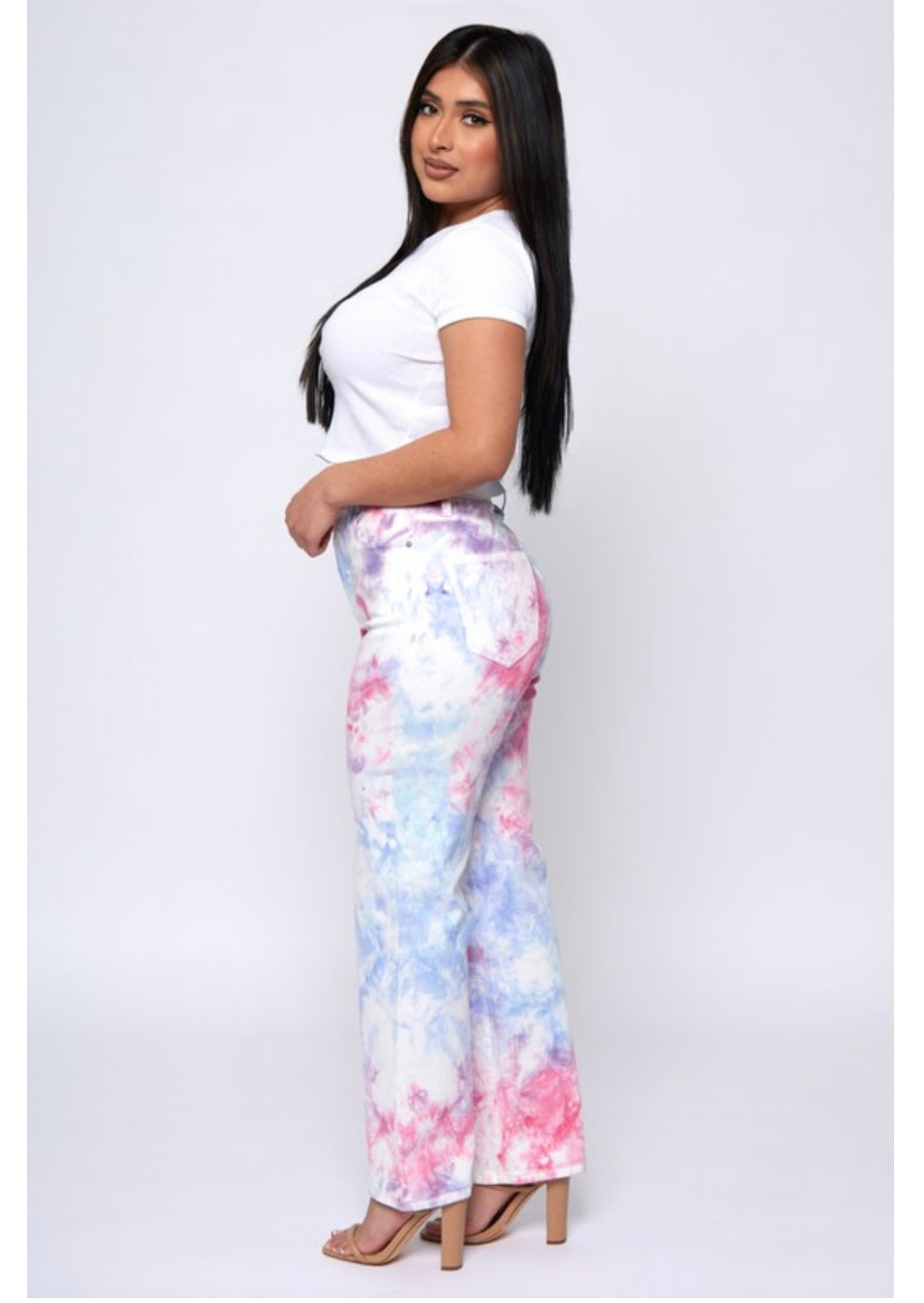 JEANS: Pink & Purple Tie Dye Straight Leg Pants